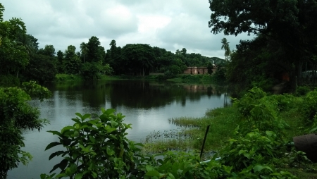 বিদ্যুৎ মুখোপাধ্যায় বাজার থেকে ফিরলেন সাইকেল চালিয়ে। ভদ্রলোকের সঙ্গে কুশল বিনিময় হলো, তিনি বাড়িতে গেলেন সাইকেল রাখতে। চারটি মন্দিরের মাঝখানের পথ দিয়ে যেতে হয় তার বাড়িতে। তিনি ফিরে এলে বললাম, ‘স্কুলের পাশের দীঘির পাড়ে গিয়ে বসে আলাপ করি চলুন।’