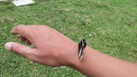 আমি শ্মশানময় পায়চারি করতে লাগলাম। একটা প্রজাপতি উড়ে এসে বসলো আমার হাতে। আমি যেখানে যাই প্রজাপতি উড়ে গিয়ে সেখানে গিয়েই আমার গায়ে বসে। হাতে বসে, কাঁধে বাসে, হ্যাটে বসে, এমনকি আমার ডান গালেও বসে থাকলো কিছুক্ষণ! হাতে প্রজাপতি নিয়ে ঘুরলাম কিছুক্ষণ। পূর্বপাশেও আরেকটি বাঁধানো ঘাট, ঘাটের সিঁড়ি ভেঙে জলের কাছে গিয়ে দাঁড়ালাম, প্রজাপতি আমার সঙ্গে সঙ্গে গেল।