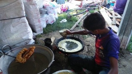 প্রচণ্ড গরম, তবু মেলায় ঘুরতে ভাল লাগছে! ঘুরে ঘুরে ছবি তুলছি, পণ্য দেখছি, মানুষ এবং মানুষের কেনাকাটা দেখছি। কোনো বালক যখন এটা-ওটা কেনার জন্য মায়ের কাছে বায়না ধরছে, তখন ওই বালকের মাঝে যেন নিজেকেই খুঁজে পাচ্ছি। ঘুরতে ঘুরতে কিছুটা ক্লান্ত হলে একটা বটগাছের নিচে এসে দাঁড়ালাম। মনে হলো একটু বসতে পারলে ভাল হতো, কিন্তু এখানে মানুষের ভিড়, বসার জায়গা নেই। নির্মিয়মাণ একটা সু-উচ্চ মন্দিরের পাশে একটা বৃহৎ অশ্বত্থগাছ চোখে পড়লো। ওদিকটায় যদি বসার জায়গা পাওয়া যায় সেই আশায় হাঁটতে শুরু করলাম। দু-পাশে মিষ্টির দোকানে সাজানো নানা ধরনের মিষ্টি। মিষ্টির দোকানের পিছনেই ময়রারা মিষ্টি বানাতে ব্যস্ত। ধোঁয় উঠা চুলার গরম কড়াইয়ে কেউ জিলাপির প্যাঁচ কষছে, কেউ রসে চুবিয়ে জিলাপি থালায় তুলছে, কেউবা রসগোল্লা ফুলিয়ে তুলছে কড়াইয়ে। মিষ্টির দোকান পার হলে দেখলাম একজন জটাধারী সন্ন্যাসী বসে আছে আর তাকে ঘিরে আছে কয়েকজন শিষ্য। নদীলগ্ন আশ্রমের পাকা ঘাট চোখে পড়লো। ঘাট পাড়ে গিয়ে বসবো ভাবছি, তার আগেই ডানদিকে চোখে পড়লো ছয়টি লোহার খুঁটির চিতা। এগোলাম চিতার দিকে। পাকা করা চিতা, একটা পাকা ড্রেন গিয়েছে নদীর দিকে, সেখানে ঝোপ-জঙ্গলের মধ্যে রয়েছে মানুষ আর কাঠপোড়া ছাইয়ে গাদা।