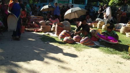 অনেকটা সময় ঘাটে বসে থাকার পর আবার মেলার মধ্যে ফিরে এলাম। সূর্যের তেজ কিছুটা কমায় এখন লোকের ভিড় আরো বেড়েছে। কিছুক্ষণ এলোমেলো ঘোরার পর একটা মৃৎশিল্পের দোকানে এসে দাঁড়ালাম। একটা মাটির টিয়াপাখি আর তেরোটা মাটির ছোট ছোট কচ্ছপ, কুমির, কুকুর, পাখি ইত্যাদি কিনলাম। আরেকটা দোকান থেকে কিনলাম একটা গরু।