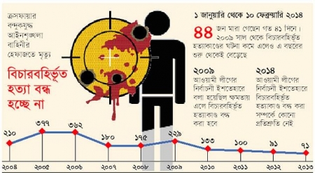 ২০১৩-১৪ যুদ্ধাপরাধী সমর্থকদের ব্যাপক সহিংসতা সামাল দিতে আইনশৃঙ্খলা রক্ষাকারী বাহিনীকে সরকারের উচ্চপর্যায় থেকে অতি কঠোর অবস্থানে যেতে বলা হয়েছিল। তখন বেপরোয়া না হয়ে উপায়ও ছিলনা