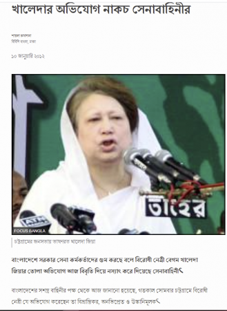তিনি এক ভাষনে বলেছিলেন সেনাবাহিনী থেকে অফিসার গুম করা হচ্ছে। একটি ইমেইল দেখিয়ে মেজর জিয়া ইমেইল বার্তায় বলেছিলেন, “তাকে সাভার রেখে ভারতীয় গোয়েন্দা সংস্থার সদস্যরা অপহরণ করেছে। তাকে চোখ বেঁধে অজানা স্থানে নিয়ে বিভিন্ন বিষয়ে জিজ্ঞাসাবাদ করা হচ্ছে। বিদেশি র গোয়েন্দা সংস্থা র সদস্যরাও সেখানে ছিল। (রর হাতে গ্রেফতার অবস্থায় মেইল করা যায়?)