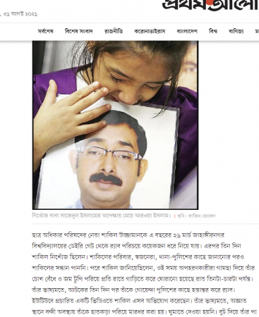 নিখোজের মাত্র ৩ দিন পর প্রথমে পুলিশের কাছে, এরপর জামিন। ফিরে আসা জাবি ছাত্র অধিকার পরিষদের নেতা শাকিল উজ্জামান। উনি মুক্ত, ইউটিউব করে বেড়াচ্ছেন, উনি এখনো গুমের তালিকায়, প্রতিবছর ওনার ছবি নিয়ে কাঁদাকাটিও চলে।