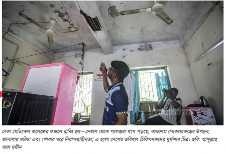এই কথাগুলো বলার পেছনে কারণ একটি ছবি ও সংবাদ, যা সম্প্রতি বিডিনিউজ টোয়েন্টিফোর ডটকমে প্রকাশিত হয়েছে। ছবিগুলো ঢাকা মেডিকেল কলেজের ফজলে রাব্বি ছাত্রাবাসের। হলটির মূল ভবন ঝুঁকিপূর্ণ হওয়ায় শিক্ষার্থীরা সরতে বাধ্য হয়েছেন পাশের ভবনে।