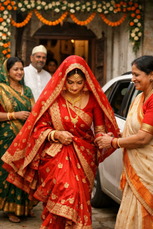 লাল শাড়ীর ঘোমটা দিয়ে শশুর বাড়ী নামল আমিনা ।