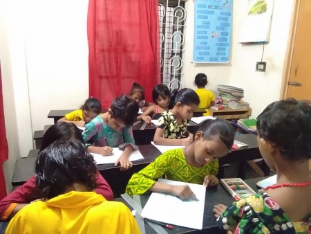 কজন মন দিয়ে আঁকছে। কেউবা খেলছে। দু একজন দুষ্টামি করছে।