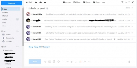 আমি বুঝতে পারলাম যে এটা ভুয়া কোন জিনিস কারন তার ইমেইল ঠিকানা [email protected] এটা কোন ব্যংকের ইমেইল ঠিকানা না। এবং এই রকমের মেইল খুবই সহজেই বানানো যায়। আমি তাকে বললাম যে আমি আগ্রহী।