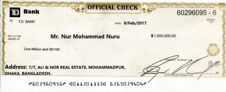 লয়েড ব্যাংকে ১২ বছর ধরে চাকুরী করেন এবং তার এক ক্লায়ান্ট যার নাম আমার সাথে মেলে তিনি অনেক টাকা রেখে মারা গেছেন এবং এই টাকা ৫০-৫০ আমাকে দিতে চান।