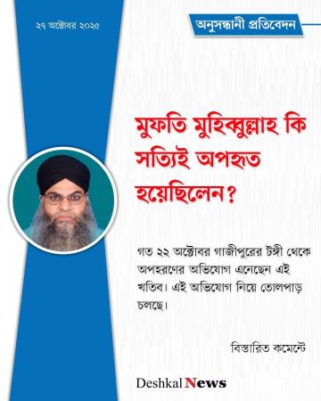 দেশকাল নিউজ ডটকমের অনুসন্ধান আর পুলিশের তদন্তও প্রায় একই রকম। তদন্ত সংশ্লিষ্ট একাধিক কর্মকর্তা জানিয়েছেন, এখন মুহিব্বুল্লাহই তদন্তের মুখে আছেন।