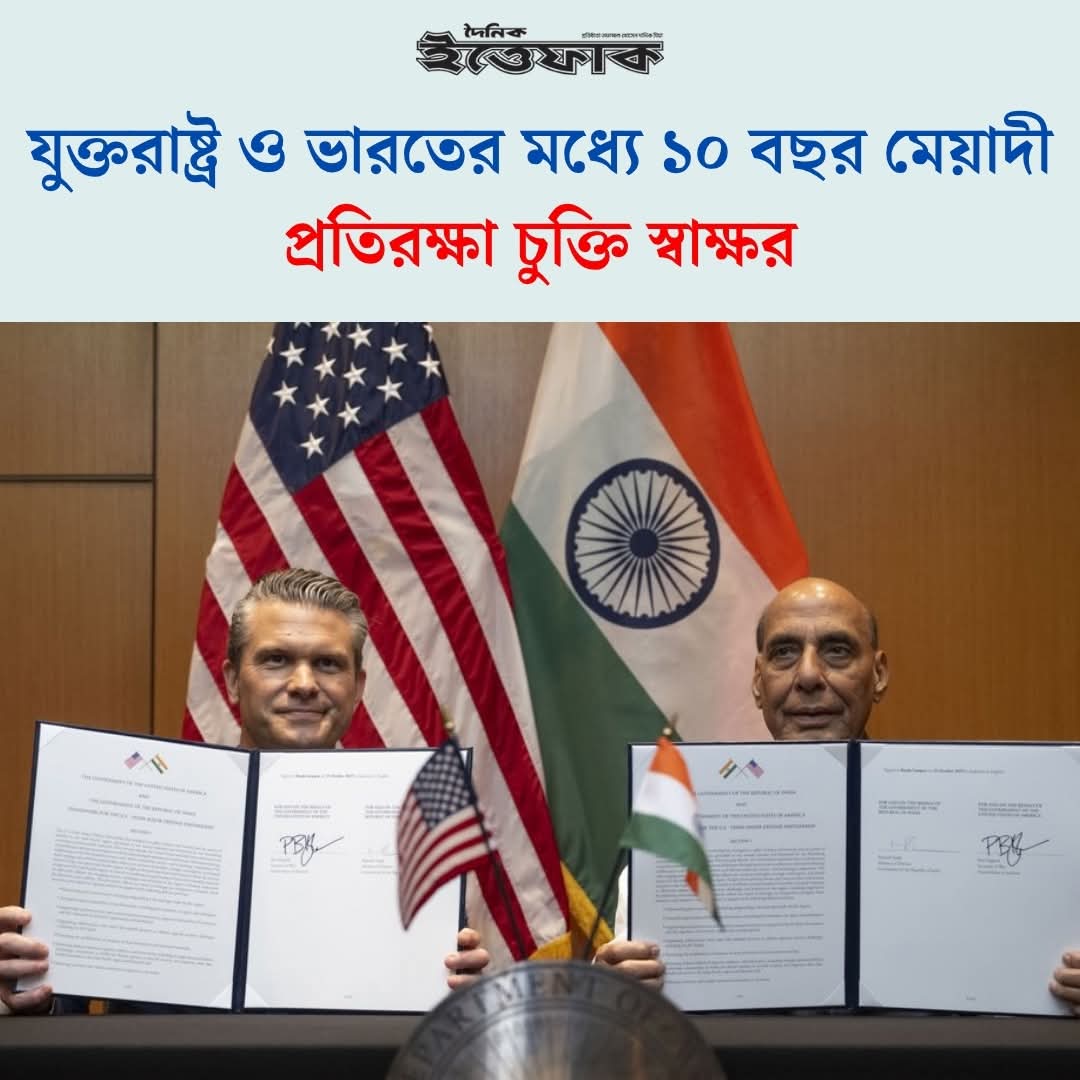 ভারত আর আমেরিকা নিজেদের মাঝে ১০ বছর মেয়াদী প্রতিরক্ষা চুক্তি করেছে। অর্থাৎ একজনের বিপদে আরেকজন এগিয়ে আসবে।