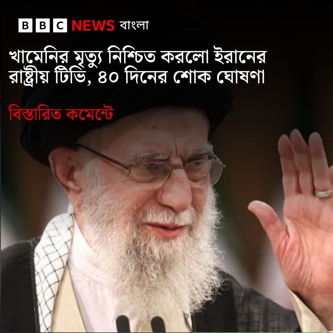বলেছিলাম না সত্যিটা বেশিক্ষণ চেপে রাখা যায় না? শুধু শুধু সত্য প্রচার করতে গিয়ে একটা শ্রেণির গালি খেয়ে ভোরে ঘুমালাম! ইরান কিছুতেই স্বীকার করছিলো না যে তাদের সর্বোচ্চ ধর্মীয় নেতা নেই! কী মুসিবৎ! বিশ্বের সবচেয়ে বড় সংবাদমাধ্যমগুলো যখন নিশ্চিত করেছে মৃত্যুসংবাদ, তখনও বাঙ্গু মিডিয়া নিউজ করছে ইরানের দোহাই দিয়ে যে তিনি সুস্থ আছেন, যুদ্ধে নেতৃত্ব দিচ্ছেন!