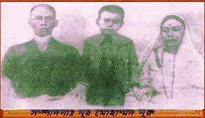 (নবদ্বীপচন্দ্র দেববর্মণ এবং মাতা নিরুপমা দেবীর মাঝে শচীন দেববর্মন)
