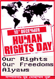 বজ্র আটুনি ফস্কো গিরো। আইন যত কঠিন হোক আইনের ফাঁক ফোঁকর গলিয়ে তা ভাঙ্গা ততটাই সহজ। ঘটা করে আইন করা হয় যেন তা ভাঙ্গার আনন্দ লাভের জন্য। আইন ভাঙ্গার এই ধারাবাহিকতায় বিশ্বের অন্যান্য দেশের মতো বাংলাদেশেও আজ মহা সমারোহে পালিত হবে ৬৭তম বিশ্ব মানবাধিকার দিবস আজ। দ্বিতীয় বিশ্বযুদ্ধের পর জাতি-রাষ্ট্রের মধ্যে বিভেদ দূর করার লক্ষ্যে এবং মানুষের প্রতি মানুষের সহমর্মিতা এবং মানবতাবোধকে সর্বোচ্চ গুরুত্ব দিয়ে ১৯৪৮ সালের ১০ ডিসেম্বর জাতিসংঘের সদস্য রাষ্ট্রগুলোর সমন্বয়ে ঘোষিত হয় সার্বজনীন মানবাধিকার ঘোষণা। জাতিসংঘের ঘোষণা অনুযায়ী ১৯৫০ সালে জাতিসংঘ সাধারণ পরিষদের ৩১৭তম প্লেনারি সভায় ৪২৩(ভি) প্রস্তাবে গৃহীত সিদ্ধান্ত মোতাবেক প্রতিবছর ১০ ডিসেম্বর যথাযোগ্য মর্যাদা ও গুরুত্বের সাথে বিশ্বব্যাপী পালিত হয় বিশ্ব মানবাধিকার দিবস। জাতিসংঘের নির্দেশনা অনুযায়ী সেই থেকে প্রতি বছর ১০ ডিসেম্বর ঐতিহ্যগতভাবে ১০ ডিসেম্বরকে কেন্দ্র করে প্রতি পাঁচ বৎসর অন্তর 'জাতিসংঘের মানব অধিকার ক্ষেত্র পুরস্কার' প্রদান করা হয়। এছাড়া নোবেল শান্তি পুরস্কার প্রদান কার্যক্রমও এদিনেই হয়ে থাকে। দ্বিতীয় বিশ্বযুদ্ধের পর জাতি ও রাষ্ট্রের মধ্যে বিভেদ দূর করার লক্ষ্যে মানবাধিকার ঘোষণাটি ছিল একটি যুগান্তকারী সিদ্ধান্ত। এ বছর দিবসটির প্রতিপাদ্য খুবই তাৎপর্যপূর্ণ। জাতিসংঘ মানবাধিকার ঘোষণার ৬৭তম দিবসে জাতিসংঘ ঘোষিত মূল প্রতিপাদ্য ‘সব সময় আমাদের অধিকার, আমাদের স্বাধীনতা’ (Our Rights, Our Freedom, Always)। বাংলাদেশ স্বাধীন রাষ্ট্র হিসাবে ১৯৭৪ সালে জাতিসংঘে যোগদান করে এবং ইউনিভার্সাল ডিক্লারেশন অব হিউম্যান রাইটস্ বা সর্বজনীন মানবাধিকার ঘোষণার স্মরণার্থে মানবাধিকার দিবস উদযাপন শুরু করে। সরকার বিগত সাত বছরে মানবাধিকার এবং মৌলিক স্বাধীনতা সমুন্নত রাখতে নিরলস প্রচেষ্টা চালিয়েছে। বিশ্বের অন্যান্য দেশের মতোবাংলাদেশ মানবাধিকার কমিশন দেশব্যাপী বিভিন্ন কর্মসূচির মধ্যদিয়ে দিবসটি পালন করবে। এছাড়াও বাংলাদেশ লেবার ওয়েল ফেয়ার ফাউন্ডেশন, হিউম্যান রাইটস রিভিউ সোসাইটি, সেভ হিউম্যান পিস অর্গানাইজেশন বাংলাদেশ পৃথক কর্মসূচির মধ্যদিয়ে ৬৭তম বিশ্ব মানবাধিকার দিবস পালন করবে।