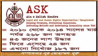 দেশীয় মানবাধিকার সংগঠন আইন ও সালিশ কেন্দ্রের (আসক) পরিসংখ্যান ঘেঁটে গুম-অপহরণের উদ্বেগজনক চিত্র পাওয়া গেছে। পরিসংখ্যান বলছে, গত আট বছরের মধ্যে চলতি বছরের প্রথম নয় মাসে এ ধরনের ঘটনা সবচেয়ে বেশি ঘটেছে। এ সময়ে দেশে ৮২ ব্যক্তি গুম-অপহরণের শিকার হন। বেশির ভাগ ক্ষেত্রেই আইনশৃঙ্খলা রক্ষাকারী বাহিনীর পরিচয় দিয়ে এসব ব্যক্তিকে তুলে নেওয়া হয়েছে বলে তাঁদের স্বজনেরা অভিযোগ করেছেন। পরে এঁদের মধ্যে ২৩ জনের লাশ পাওয়া গেছে। ১০ জন ছাড়া পেয়েছেন। সাতজনকে গ্রেপ্তারের খবর পরে গণমাধ্যমকে জানিয়েছে আইনশৃঙ্খলা রক্ষাকারী বাহিনী। তিনজনকে পরে থানায় ও কারাগারে পাওয়া গেছে। বাকি ৩৯ জন এখনো নিখোঁজ। আসকের পরিসংখ্যান বলছে, এই গুম-খুন ও অপহরণের ঘটনা থেকে সরকারি দলের লোকজনও রেহাই পাচ্ছে না। এ বছরের ৮২ ভুক্তভোগীর মধ্যে ১১ জন আওয়ামী লীগের রাজনীতির সঙ্গে যুক্ত। অন্যদের মধ্যে ১৮ জন বিএনপির, তিনজন জামায়াতে ইসলামীর, ১১ জন ব্যবসায়ী, আটজন চাকরিজীবী, তিনজন ছাত্র, দুজন শিক্ষক, একজন আইনজীবী, দুজন কৃষক, একজন অটোরিকশাচালক, একজন টোল আদায়কারী এবং পৌর কাউন্সিলর ও ইউনিয়ন পরিষদের সদস্য দুজন। বাকি ১৯ জনের পরিচয় নিশ্চিত হওয়া যায়নি। এর আগে ২০০৭ থেকে ২০০৯ সালে গুম-অপহরণের শিকার হয়েছিলেন ২১ জন। ২০১০-এ সংখ্যা বেড়ে দাঁড়ায় ৪৪ জন, যাঁদের মধ্যে ছয়জন পরে ছাড়া পেয়েছিলেন ও একজনকে পুলিশে দেওয়া হয়েছিল। পরে ছয়জনের লাশ পাওয়া যায়। ৩১ জনের খোঁজ মেলেনি। ২০১১ সালে গুম-অপহরণ হন ৫৯ জন। তাঁদের মধ্যে ১৬ জনের লাশ উদ্ধার হলেও ৩৯ জন এখনো নিখোঁজ। চারজন পরে ছাড়া পান। ২০১২ সালে এ সংখ্যা ছিল ৫৬। যাঁদের মধ্যে আটজন পরে ছাড়া পান, চারজনের লাশ পাওয়া যায়। ১০ জনকে পুলিশ হেফাজতে ও কারাগারে পাওয়া যায়। ৩৪ জন এখনো নিখোঁজ। ২০১৩ সালে গুমের শিকার হন ৭৬ জন। এঁদের মধ্যে ২৩ জনের লাশ পরে পাওয়া গেছে। অন্যরা এখনো নিখোঁজ। এ ছাড়া গত এক দশকে আইনশৃঙ্খলা রক্ষাকারী বাহিনীর কথিত ‘ক্রসফায়ার’, ‘বন্দুকযুদ্ধ’ বা ‘এনকাউন্টারের’ ঘটনায় ও হেফাজতে নিহতের সংখ্যা দুই হাজারেরও বেশি। একইভাবে গত বছরের প্রথম ১০ মাসে মারা গেছেন ১৩৬ জন। এসব মৃত্যুর ঘটনাকে বিচারবহির্ভূত হত্যা হিসেবে উল্লেখ করেছে আসক।
