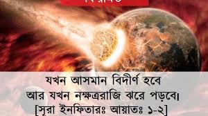 ভয়াবহ বিপর্যয়ের মধ্য দিয়ে কিয়ামত সংঘটিত হবে। সেদিন প্রাকৃতিক শৃঙ্খলা ভেঙে যাবে। আসমান-জমিন, পাহাড়-পর্বত, গ্রহ-নক্ষত্র কোনো কিছুই আপন অবস্থায় অবশিষ্ট থাকবে না। আল্লাহ পবিত্র কোরআনে বলেন, ‘তারা আপনাকে জিজ্ঞেস করে কিয়ামত কখন ঘটবে? আপনি বলুন! প্রকৃতপক্ষে তার জ্ঞান শুধু আমার প্রতিপালকের কাছেই আছে। শুধু তিনিই যথাসময়ে তা প্রকাশ করবেন; তা আকাশমণ্ডলী ও পৃথিবীতে একটি ভয়ংকর ঘটনা হবে। আকস্মিকভাবেই তা তোমাদের ওপর আপতিত হবে। ’ (সুরা আরাফ, আয়াত : ১৮৭)