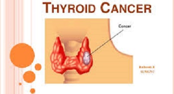 থাইরয়েড ক্যান্সারঃ থাইরয়েড গ্রন্থির কোনো অংশের কোষসংখ্যা অনিয়ন্ত্রিতভাবে বৃদ্ধি পেলে তাকে থায়রয়েড ক্যান্সার বলে। তবে বেশিরভাগ ক্ষেত্রে থাইরয়েড গ্রন্থি বা এর অংশবিশেষ ফুলে ওঠা মানেই ক্যান্সার নয়। থাইরয়েড ক্যান্সারে যে লক্ষণগুলো দেখা দিতে পারে : গলার সম্মুখভাগে ফুলে ওঠা। ফোলা অংশটি বেশ শক্ত হয়। একটি বা একাধিক টিউমার হতে পারে। উভয় পাশে টিউমার হতে পারে, আশপাশের লিঙ্ক নোডগুলো ফুলে উঠতে পারে। ওজন কমে যায়। খাওয়ার রুচি কমে যেতে পারে। গলার স্বর মোটা বা ফ্যাসফেসে হতে পারে। তবে থাইরয়েড নোডিউল বা ক্যান্সার ছাড়াও গলার সামনে ফুলে উঠতে পারে। শ্বাসনালির ওপর চাপ সৃষ্টির ফলে শ্বাসকষ্ট হতে পারে। ক্যান্সার শনাক্ত হলে বা ক্যান্সার আছে এমন সন্দেহ হলে অতিদ্রুত নাক, কান ও গলা বিশেষজ্ঞ বা থাইরয়েড অপারেশনে পারদর্শী কোনো সার্জনের কাছে যেতে হবে।