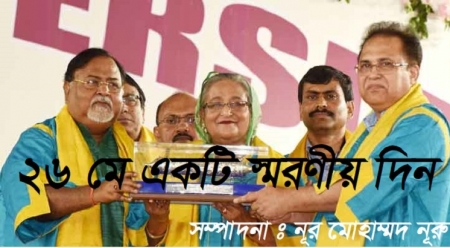 ২০১৮ সালের আজকের দিনে (২৬ মে) প্রধানমন্ত্রী শেখ হাসিনাকে সম্মানসূচক ডি.লিট উপাধি দেয় পশ্চিমবঙ্গের কাজী নজরুল বিশ্ববিদ্যালয়। শোষণমুক্ত ও বৈষম্যহীন সমাজ গঠনে এবং গণতন্ত্র, নারীর ক্ষমতায়ন, দারিদ্র্য দূরীকরণ এবং আর্থ সামাজিক উন্নয়নের মাধ্যমে সাধারণ মানুষের জীবনমান উন্নয়নে অসাধারণ ভূমিকা রাখায় তার স্বীকৃতি হিসেবে শেখ হাসিনাকে এ উপাধি দেয়া হয়। ভারতের আসানসোলে অবস্থিত বিশ্বব্যিালয়টির তৃতীয় সমাবর্তন অনুষ্ঠানে তাঁর হাতে সম্মানসূচক এই উপাধি তুলে দেন রাজটির শিক্ষামন্ত্রী পার্থ চ্যাটার্জি। এসময় সেখানে উপস্থিত ছিলেন বিশ্ববিদ্যালয়ের উপাচার্য সাধন চক্রবর্তী সহ বিশ্ববিদ্যালয়ের অন্য অধ্যাপকরা। তবে শারীরিক অসুস্থতার কারণে এদিনের অনুষ্ঠানে উপস্থিত থাকতে পারেন নি রাজ্যটির রাজ্যপাল কেশরীনাথ ত্রিপাঠি। আয়োজনটি এই বিশ্ববিদ্যালয়ে তৃতীয় সমাবর্তন উৎসব। অনুষ্ঠানে বিশ্ববিদ্যালয়ের স্বর্ণপদক পাওয়া ২০ জন কৃতী শিক্ষার্থীকে সংবর্ধনা দেওয়া হয়। ডিলিট উপাধিতে ভূষিত হয়ে শেখ হাসিনা বলেন ‘বাংলাদেশের জাতীয় কবি ১১৯ তম জন্মবার্ষীকির দিনে এই বিশ্ববিদ্যালয়ে আমন্ত্রণ জানানো হয়েছে, আমি অত্যন্ত গর্বিত। আমাকে যখন দাওয়াত দেওয়া হল আমি তখন রাজি হলাম-একটি মাত্র নামের জন্য সেটি হল কাজী নজরুল ইসলাম। তার নামে একটি সম্মানসূচন ডিগ্রি পাওয়া আমার কাছে বড় পাওয়া। এটা বাংলাদেশর জনগণের কাছেও বিরাট সম্মানের। তিনি শুধুই বাংলাদেশের জাতীয় কবিই নন, দুই বাংলার মানুষের হৃদয়ে, চেতনায় তিনি আছেন। কাজেই এই সম্মান শুধু আমার নয়, সকল বাঙালির। এই সম্মান বাংলাদেশের ও সমস্ত বাঙালিকে আমি উৎসর্গ করলাম’।
