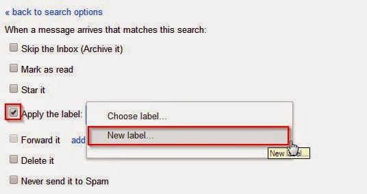 এখানে Apply the label এর চেক বক্সে ক্লিক করে লিস্ট থেকে "New label...." সিলেক্ট করুন।