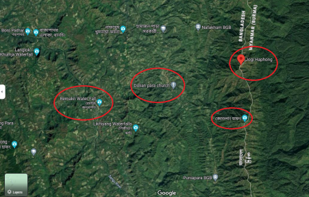 দুপুরের আগেই আমরা থানচি গিয়ে হাজির হলাম । ঢাকা থেকে আমরা মোট ৫জন রওয়ানা দিয়েছিলাম । আমাদের টিমের আরেকজন সদস্য আমাদের সাথে যোগ দিয়েছিলো থানচি থেকে । আমাদের পুরো যাত্রা পথের একটা ম্যাপ নিচে দেওয়া হল ।