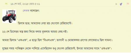 আরোও একটা মজার ব্যাপার উল্লেখ করি । তার বয়স ৭২ সে নিজে বলেছে গতবছর । সেই হিসাবে জন্ম ৫০ সালে । তাইলে ১৯৭২ সালে তার বয়স হবে ২২ বছর । এখন ২২ বছর বয়সে কে মেডিক্যাল এডমিশনে চান্স পায়? এই যে তরতাজা ডাহা মিথ্যা কথা ! চাপা মারার একটা লিমিট থাকা দরকার ।