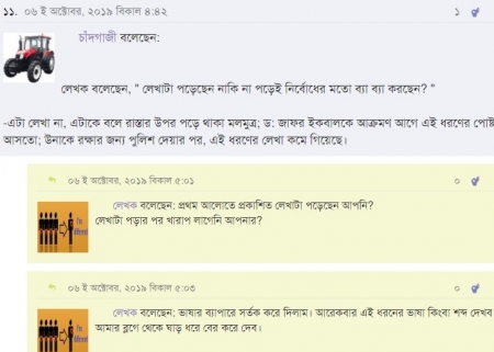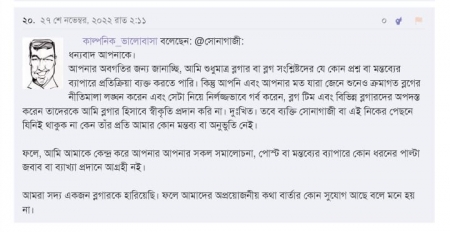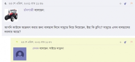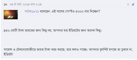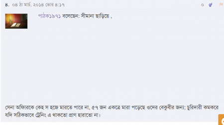 আরো দুই স্ক্রিনশট যোগ করছি. প্রথমটা ব্লগ মডারেটরের । একটা ব্লগের মডারেটর কী পরিমান ত্যক্তবিরক্ত হলে এমন বক্তব্য দিতে পারে আপনারা নিজেরাই ভাবতে পারেন ।