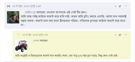 এরপর কমেন্ট ব্যান নিয়ে। তাকে কেউ কমেন্ট করলে সে ব্লগিং পারে না আর সে কমেন্ট ব্যান করলে তারা ব্লগার না !