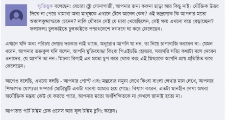আরো কয়েকটি স্ক্রিনশট যুক্ত করা দরকার বলে মনে করছি । এই স্ক্রিনশট গুলো মুলত সোনার নিজেকে জ্ঞানীর হওয়ার ভং ধরার প্রমান ।