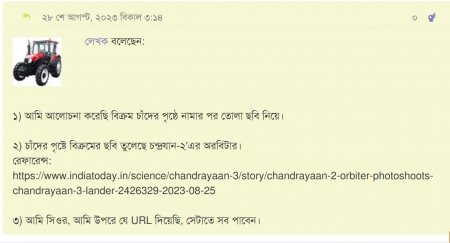 কয়েকদিন আগে ঢাবিয়ান একটি প্রশ্ন করেছিলো যে ভারতে চন্দ্রঅভিযানের যে ছবি প্রকাশ পেয়েছে তা কে তুলেছে । নিচে সেটার একটা ছবি দেওয়া হয়েছিলো । ছবিটা যে ইলাস্ট্রেট করা সোনা মিয়া সেইটা বুঝতেই পারেন নাই । বড় কনফিডেন্টের সাথে সেই ছবি পোস্ট করেছে ।