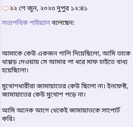 ভুয়া মফিজ বলেছেন: জামাত সংক্রান্ত ওই স্ক্রীণশটটা আমিও নিয়া রাখছিলাম।