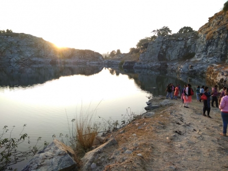 দুপুরে লাঞ্চ করে আমরা বার হলাম পরবর্তী স্থান খয়রাবেড়ি ড্যামের উদ্দশ্যে।ঘাচকোচা ফলস থেকে ফিরে আমার স্ত্রী বেশ অসুস্থ বোধ করায় ওকে ছাড়াই আমরা রওনা দিলাম। পড়ন্ত বিকালে লেকের শান্ত জলরাশির উপরে রক্তিম দেবের লালআভা, যেন ভাষার বর্ননার অতীত।মাঝে মাঝে ডামের ঠান্ডা বাতাসে আমরা বেশ ঠান্ডা অনুভব করতে লাগলাম। দলনায়কের নির্দেশে আমরা আবার গাড়িতে বসলাম।পরবর্তী লক্ষ্য চরিদা বা মুখোশ গ্রাম।