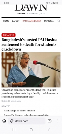হাসিনার রায়ের আধা ঘণ্টা থেকে এক ঘণ্টার মধ্যে বিভিন্ন দেশের সংবাদপত্রের ওয়েবসাইটে কী লিখেছে দেখি।