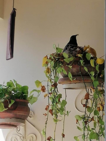 শায়ানের চমৎকার গানটাসহ ঢুকিচেপা'র মন্তব্যটা উপভোগ করলাম। মিরোরডডল এর পোস্টকৃত সুন্দর সাদা কাকাতুয়ার ছবিটি দেখে মনে হলো, গত বছর মেলবোর্ন সফরকালে আমি কয়েকটি আবাসিক এলাকায় এরকম ঝাঁকে ঝাঁকে উড়ে আসা কাকাতুয়ার দলকে বিচরণ করতে দেখেছিলাম। মেলবোর্ন থেকে ফিরে এসে দেখি, আমার বারান্দায় বুলবুলি বাসা বেঁধেছেঃ