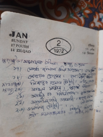 আমার বড় ভাই এ্যাডভোকেট ইসাহক আলী প্রামানিক আট দিন হলো মারা গেছেন। পুরাতন কাগজ পত্র ঘাটতে গিয়ে উনার ১৯৭২ সালের একটি ডাইরি খুঁজে পেলাম। ডাইরিতে যুদ্ধ পরবর্তী অনেক কিছু লেখা আছে। ডাইরির শুরুতেই সদ্য স্বাধীন হওয়া বাংলাদেশের মন্ত্রী পরিষদের লিস্ট পেলাম। তিনি রেডিও শুনে শুনে মন্ত্রী পরিষদের এই তালিকাটি লিখেছিলেন।