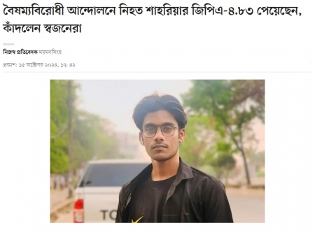প্রথম আলোর অনলাই সাইট থেকে জানতে পারলাম -