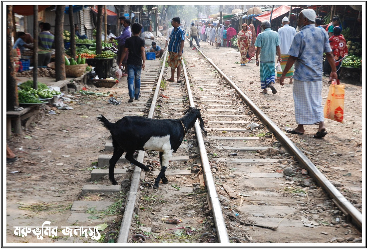০৬। আরেকটা জিনিস রেল লাইনের দুই পাশে খুব চোখে পড়েছে, সেটি হচ্ছে বাজার। কিছু দূর পরপরই বাজার দেখেছি। কিছু কিছু বাজার একেবারে রেল লাইনের উপরেই। ট্রেন আসলে কিছুটা সরে যায়।