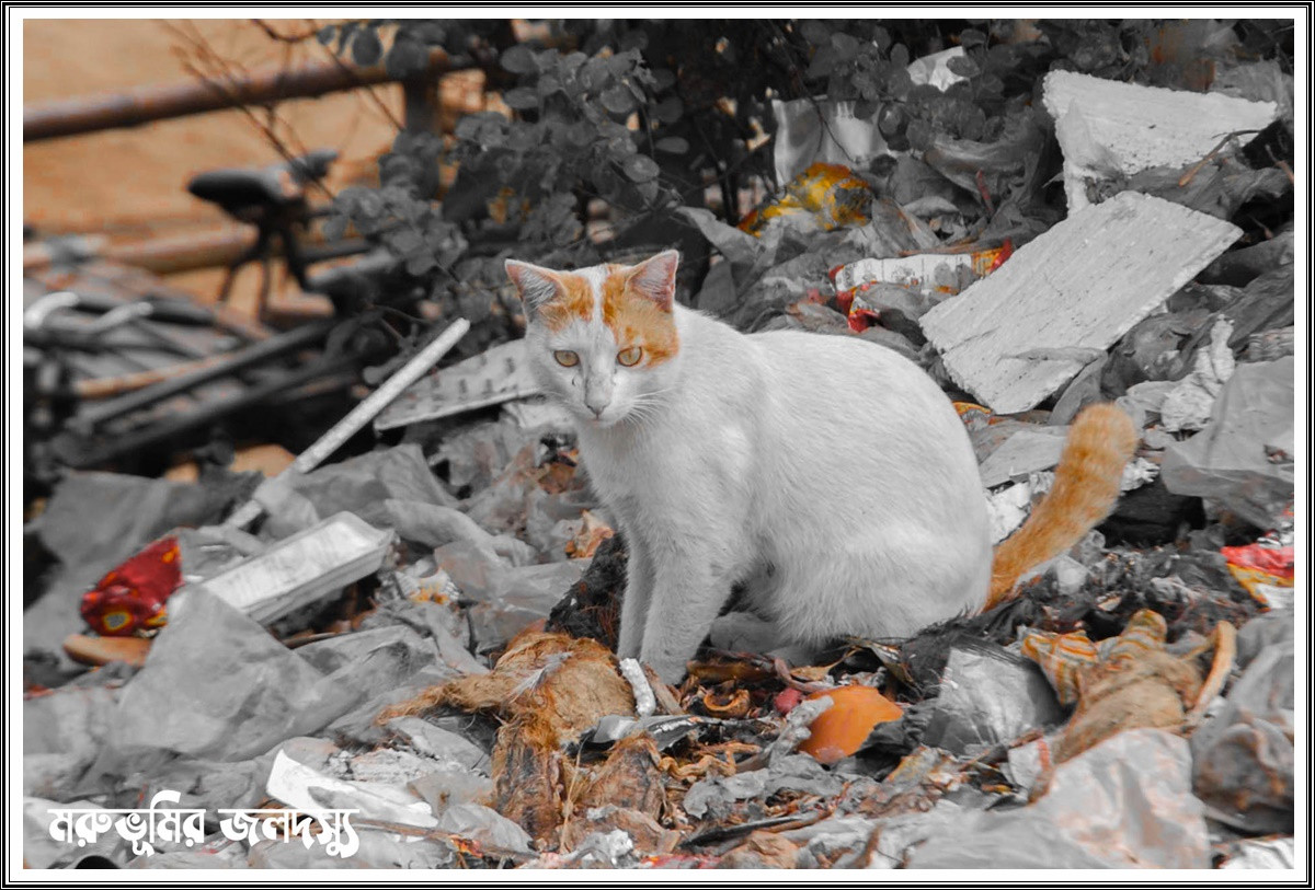 ০৫। এমন ময়লার স্তুপেই খাবার খোঁজে বিড়ালেরা।