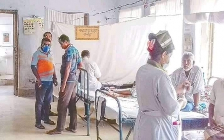 খুলনা জেনারেল হাসপাতালে মেডিসিন ওয়ার্ডের মধ্যে এক কোনায় কাপড় দিয়ে ঢেকে করোনাভাইরাসে আক্রান্ত রোগীদের জন্য জায়গা নির্ধারণ করা হয়েছে!!!!!!!!