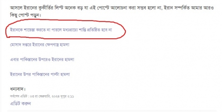 শ্রাবণধারা বলেছেন: প্রথম কথা হলো, খামেনি সরকারের পতন হয়নি, একজন খামেনির মৃত্যু হয়েছে মাত্র। এরকম অন্তত ৪০ জন খামেনি ইরানের ব্যাক পকেটে আছে। ইরানের নেটওয়ার্ক এবং ডিপ-স্টেট সম্পর্কে আপনার কোন রকম ধারনা নেই।