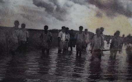 ১৯৭১ সালের একটি ছবি। রাজীবপুরের চরাঞ্চলে বেঙ্গল রেজিমেন্টের একদল যোদ্ধা অগ্রসর হচ্ছে পাকিস্তানীদের শক্র ঘাটি বাহাদুরবাদের দিকে। রাতেই আক্রমণ করা হবে। দলটির অধিনায়ক ছিলেন মেজর শাফায়াত জামিল (বীর বিক্রম)।