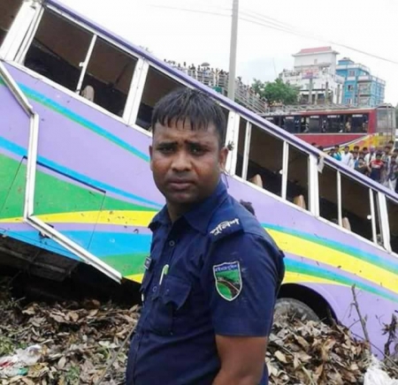 ঢাকা-চট্টগ্রাম মহাসড়কে দাউদকান্দির গৌরীপুরে অর্ধশত যাত্রী নিয়ে একটি বাস ডোবায় পড়ে যায়। দাউদকান্দি হাইওয়ে থানার কনস্টেবল পারভেজ মিয়া তখন রাস্তায় ট্রাফিক সামলাতে ব্যস্ত।