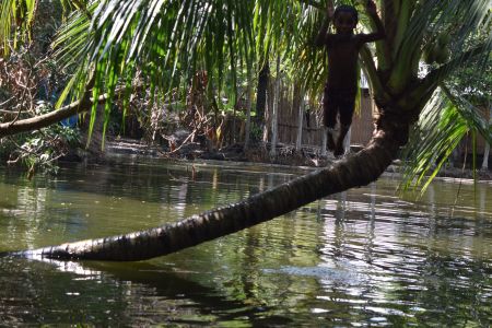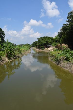 ৯। পথের পাশে লম্বা খাল। দেখতে ভালো লাগে।