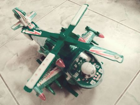 ৩। আমার মেয়ের খেলনা। আমিই খেলি। রিমোট টিপাটিপি করলে এটা আকাশে উড়ে। খেলনাটার রঙ নীল। নীল হেলিকাপ্টার ভালো লাগে না। তাই এডিট করে সবুজ করেছি।