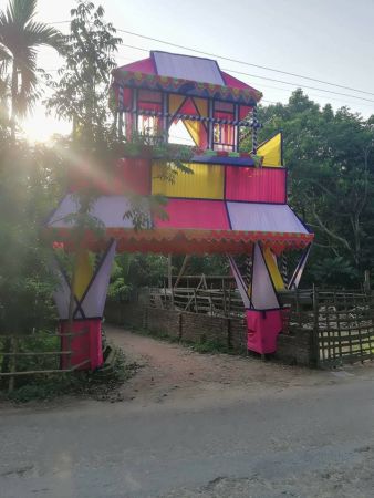 ৫। গ্রামের বিয়ে বাড়ির গেট। কার বিয়ে কে জানে! কোনো আলোকসজ্জা করেনি। বিয়ে বাড়িতে আলোকসজ্জা না থাকলে ভালো লাগে? বিয়ে বাড়ি মানেই তো গান বাজনা, হই চই।