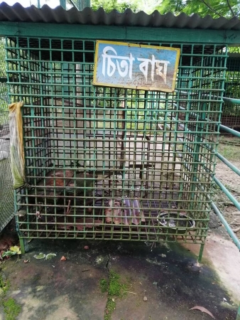 এটা মেঘলাতে। খাচায় কোনো চিতা নেই। অবশ্য নিচে একটা গেছো বিড়াল আছে।