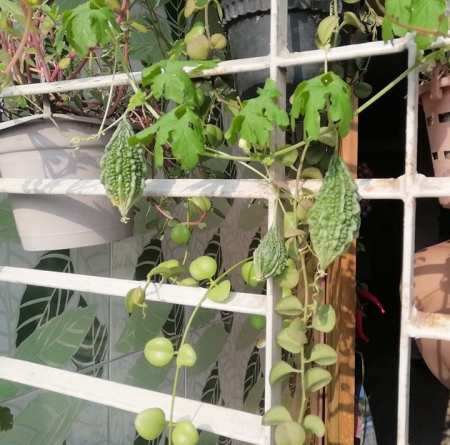 সুরভি করলা গাছ লাগিয়েছে। অতি অল্প সময়ে বেশ কিছু করলা ধরেছে। পুইশাকও বেশ দ্রুত হয়। তিনবার খেয়ে ফেলেছি। যদি একটু জায়গা থাকতো আমার মনে হয় সবজি বাজার থেকে কিনতে হতো না।