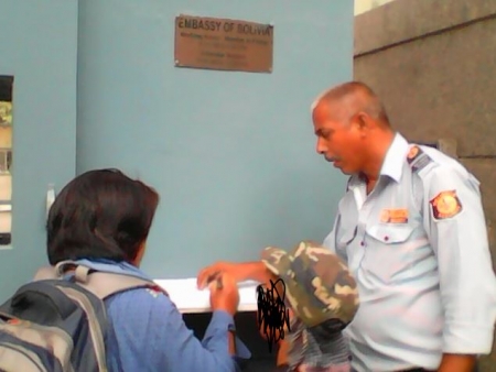 এ্যাম্বেসীর ওয়েটিং রূমটি যথেষ্ট বড়। সেখানে একপাশে ভিজিটরদের বসার জন্য সোফাসেট আছে। সামনে কাঁচের সেন্টার টেবিল তার উপর একটি ছোট জাতীয় পতাকা। কয়েকটি ডেউলি নিউজপেপার ও কিছু ডিপ্লোমেটিক জার্নাল রয়েছে। সোফার পিছনে একটা বড় পেইনটিং যেখানে সেই দেশের কোন এক প্রাকৃতিক দৃশ্যের পটভূমিতে রঙিন জাতীয় পোষাক পড়া দুজন রমণীর হেটে যাওয়া অংকিত হয়েছে। পেইনটিং-টির দুপাশে বড় আকারের দুটি পতাকা সজ্জিত। একটা ঐ দেশের পতাকা, আরেকটি ভারতের তেরঙ্গা জাতীয় পতাকা। তার অপর পাশে দেয়াল ঘেষে একটা ক্যাবিনেট, সেখানে কিছু বই রাখা আছে, আর কিছু শো পীস। তার মধ্যে একটি গান্ধীমূর্তিও আছে। লাঠি হাতে নেংটি পরিহিত বৃদ্ধ করমচাঁদ গান্ধী হেটে যাচ্ছেন। রূমের ভিতরে কিছু ছোট ছোট টবে ইনডোর প্লান্টিং আছে। ঢাকার এ্যাপার্টমেন্টগুলোতেও ইনডোর প্লান্টিং-এ এই গাছগুলিই দেখা যায়। আরেকপাশে রিডিং টেবিলের মত একটা বড় টেবিল। চারপাশে চেয়ার ও বেঞ্চ আছে। তার উপর কিছু ম্যাগাজিন ও একটি ছোট ল্যাপটপ আছে। ঠিক উল্টা দিকে দেয়ালে ঝোলানো একটা বিশাল এলসিডি স্ক্রীন। দেয়ালের স্ক্রীনটির সাথে ল্যাপটপের সংযোগ রয়েছে, তাই ঐ স্ক্রীনটিকে ল্যাপটপের মনিটর হিসাবে ব্যবহার করা যায়। টেবিলের একপাশে বড় বড় দু'টি পতাকা টাঙানো। পতাকা দুটি কার বা কিসের পতাকা তা হাসান জানে না। সেই দিকের দেয়ালে টাঙানো তাদের দেশের রাষ্ট্রপতির ছবি। সাউথ আমেরিকার দেশগুলির বেশীরভাগের রাষ্ট্রপতিই শ্বেতাঙ্গ, তবে এই ভদ্রলোক আদিবাসী। রূমের একপাশের পুরো দেয়াল জুড়েই বিশাল কাঁচের জানালা ও দরজা। সেই জানালা ও দরজা দিয়ে পাশের রাস্তার দৃশ্য দেখা যায়। দরজার ওপাশে একটা বেলকুনি। বেলকুনিতে বড় টবে একটি বড় পামট্রী রাখা আছে।