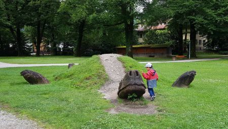 ছেলেকে তার বাবার জিম্মায় রেখে বসার জায়গা বরাবর এগোলাম। মাঝারি আকারের পুরানো এ্যাম্ফিথিয়েটার। এই পোড়ো এ্যাম্ফিথিয়েটারে বাস করে মমো নামের অদ্ভূত ছোট্ট মেয়ে। শতেক তালির মলিন জামা পড়ে সে এলোমেলো ঘুরে বেড়ায় । কেউ জানে না কোথায় তার বাবা-মা। তার সঙ্গী শুধু কাসিওপিয়া নামের এক কাছিম। মিখাইল-এন্ডে কুরপার্ক নামের এই পার্কটা আসলে জার্মান লেখক মিখাইল-এন্ডে’র বিখ্যাত বই ‘মমো’র আদলে সাজানো। এ্যাম্ফিথিয়েটার ছেড়ে দুই পা হাঁটতেই দেখি কাসিওপিয়া নিঃশব্দে ঘাপটি মেরে আছে। কিন্তু শান্ত কচ্ছপটার শান্তি বরবাদ করে দিল আমাদের ছানাপোনা। একজন কংক্রিট নাক ধরে যথেচ্ছা দোল খেল। আরেকজন তার পিঠে সওয়ার হয়ে ঘোড়া ছুটিয়ে দেয়ার একটা ব্যর্থ চেষ্টা চালালো।