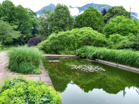 পার্কটা বিশাল। গার্মিশের একেবারে পেটের ভেতর। সবুজে ঘেরা সমান্তরাল এক ভিন্ন জগত। ভিড়ভাট্টার খুব কাছে থেকেও বহু দূরে। কে বলবে বেড়ার ওপাশেই চক্কর বক্কর হাওয়াই শার্ট চাপানো পর্যটকের দল হই হই করে বেড়াচ্ছে। দূরে বসার একটা জায়গা দেখলাম। কিন্তু বাঁধ সেধেছে তাফসু মিয়া। অভিভূতের মত লাল সাদা গোল্ডফিশের মিছিল দেখছে গোল পুকুরের পাড়ে দাঁড়িয়ে। পুকুরটা গোলও না, পুকুরও না। আয়তাকার চৌবাচ্চা। কিন্তু গোল পুকুর বলতে ভাল লাগে কেন যেন।