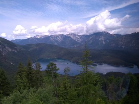 আকাশ থেকে পাতালে নেমে এলাম। একটা চমৎকার নীল হ্রদ আছে। নাম Eibsee বা আইবসি। নদ-নদী, হ্রদকে এরা আদর করে সাগর ডাকে। হ্রদের জলে কেউ প্যাডেল মেরে নৌকা চালাচ্ছে। কেউ ওয়াটার বাসের যাত্রী হয়ে পুরো এলাকাটা চক্কর দিতে ব্যস্ত। আমরাও টিকেট কেটে তাতে চড়বো বলে পাড়ে দাড়িয়ে আছি। এদিকে আকাশ ঘোলা হয়ে আসছে। পাহাড়ে আবহাওয়া বদলায় খুব দ্রুত। তার চেয়েও দ্রুত মত বদলে ছোট্ট জাহাজটার ক্যাপ্টেন জানিয়ে দিয়ে গেলো, ‘ঝড় আসছে। আজকের মত পাততাড়ি গুটিয়ে ফেলতে হচ্ছে’। কি আর করা, এদিক সেদিক এলোমেলো ঘুরে দাঁতাল রেলে চেপে রাস্তা মাপলাম।