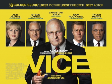 চমৎকার একটি সিনেমা এই Vice। আমার কাছে এক কথায় অসাধারণ লেগেছে। Adam McKay এর পরিচালনায় সিনেমাটিতে অভিনয় করেছেন সব বাঘা বাঘা অভিনেতারা যেমন: Christian Bale, Amy Adams, Steve Carell, Sam Rockwell সহ আরো অনেকে। ডিক চেনির চরিত্রে অভিনয় করেছে Christian Bale। চমৎকারভাবে ডিক চেনির চরিত্র ফুটিয়ে তুলতে Christian Bale শতভাগ সক্ষম ছিল। Christian Bale এর পক্ষেই সম্ভব ছিল এরকম দূর্দান্ত অভিনয় উপহার দেওয়া। আর ডোনাল্ড রামস্ফেল্ডের চরিত্রে ছিল Steve Carell। Steve Carell-ও যে একজন শক্তিমান অভিনেতা সেটা তিনি Foxcatcher সিনেমার পর আবারো প্রমাণ করলেন।
